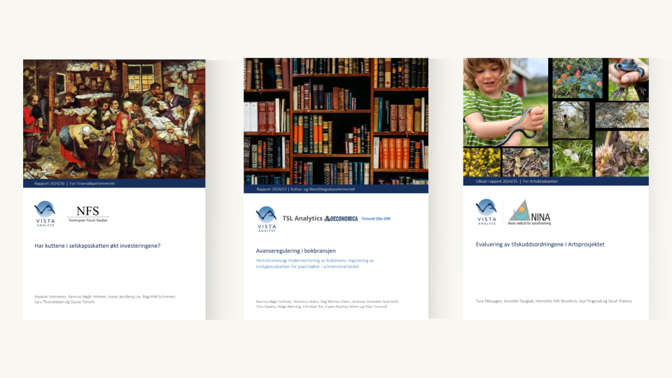 Hvert år samarbeider Vista Analyse med forskere ved universiteter, høyskoler og forskningsinstitutter. De utgjør et uvurderlig akademisk nettverk og supplement til vår egen akademiske ekspertise. I 2024 har vi hatt prosjektsamarbeid med