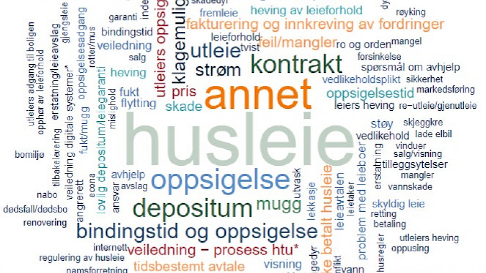 På oppdrag fra Kommunal- og distriktsdepartementet har Vista Analyse kartlagt henvendelser om husleieforhold. Hensikten er å skaffe mer kunnskap om brukerinnsikter fra leiemarkedet. Resultatet fra dette arbeidet er nå tilgjengeliggjort i en ny rapport. Rapporten kartlegger og sammenstiller hvilke temaer leietakere og utleiere henvender seg om til Forbrukerrådet, Leieboerforeningen, Huseierne og Husleietvistutvalget. Når de fire aktørene mottar en henvendelse dreier det se oftest om spørsmål knyttet til leiesum, opphør av kontrakt, mangler ved boligen og utleier og leietakers plikter.