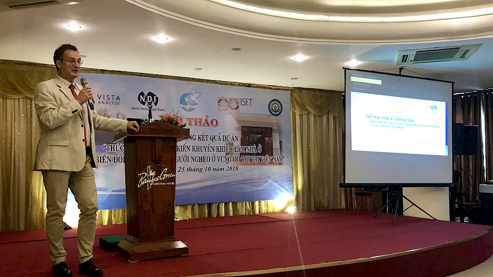 Torsdag 25. ble en travel dag for Vista Analyse. I Da Nang, Vietnam, var vi medarrangør for seminaret Sharing and amplifying results of the project “Implementing Incentives for Climate Resilient Housing Among the Urban Poor in Vietnam”, etter at vi de siste tre årene har ledet et såkalt randomized control trial knyttet til klimatilpassede boliger. Prosjektleder Haakon Vennemo presenterte prosjektet.